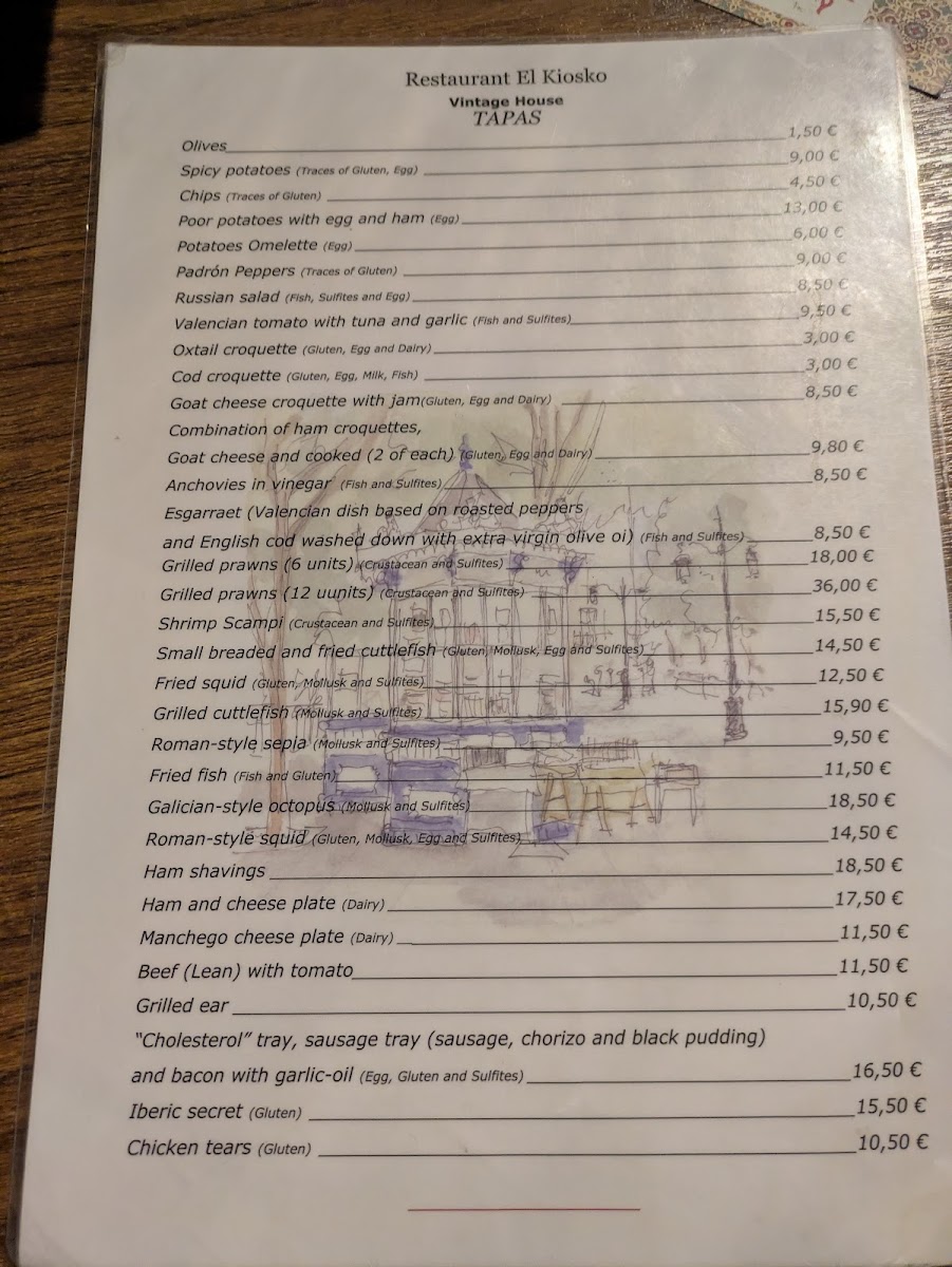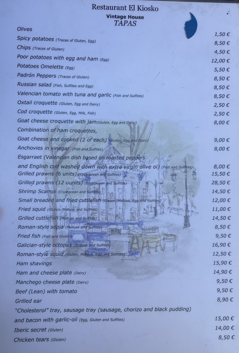The menu at Bar El Kiosko offers a straightforward yet satisfying selection of classic Valencian tapas and casual bites. It’s the kind of place where you can enjoy comforting, familiar flavors that pair well with a relaxed drink, whether you’re stopping by for a quick tapa or settling in for a leisurely midday break.